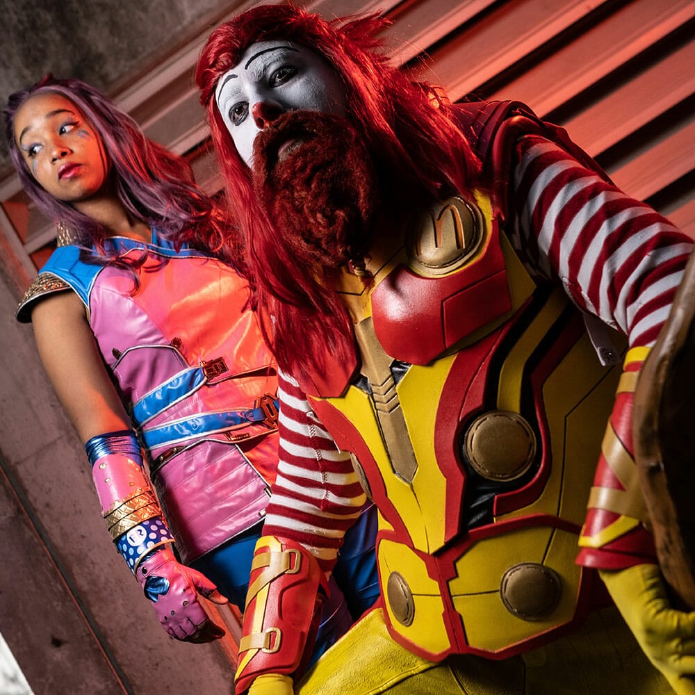 McThor was born of all things random. Ronald McDonald as Thor? Totally insane, but I was lovin’ it. He is the cosplay god of obesity and bringer of all-day breakfast. Just like McDonald’s I had to supersize, and that’s how a whole group of fast food Avengers was born, The McVengers.